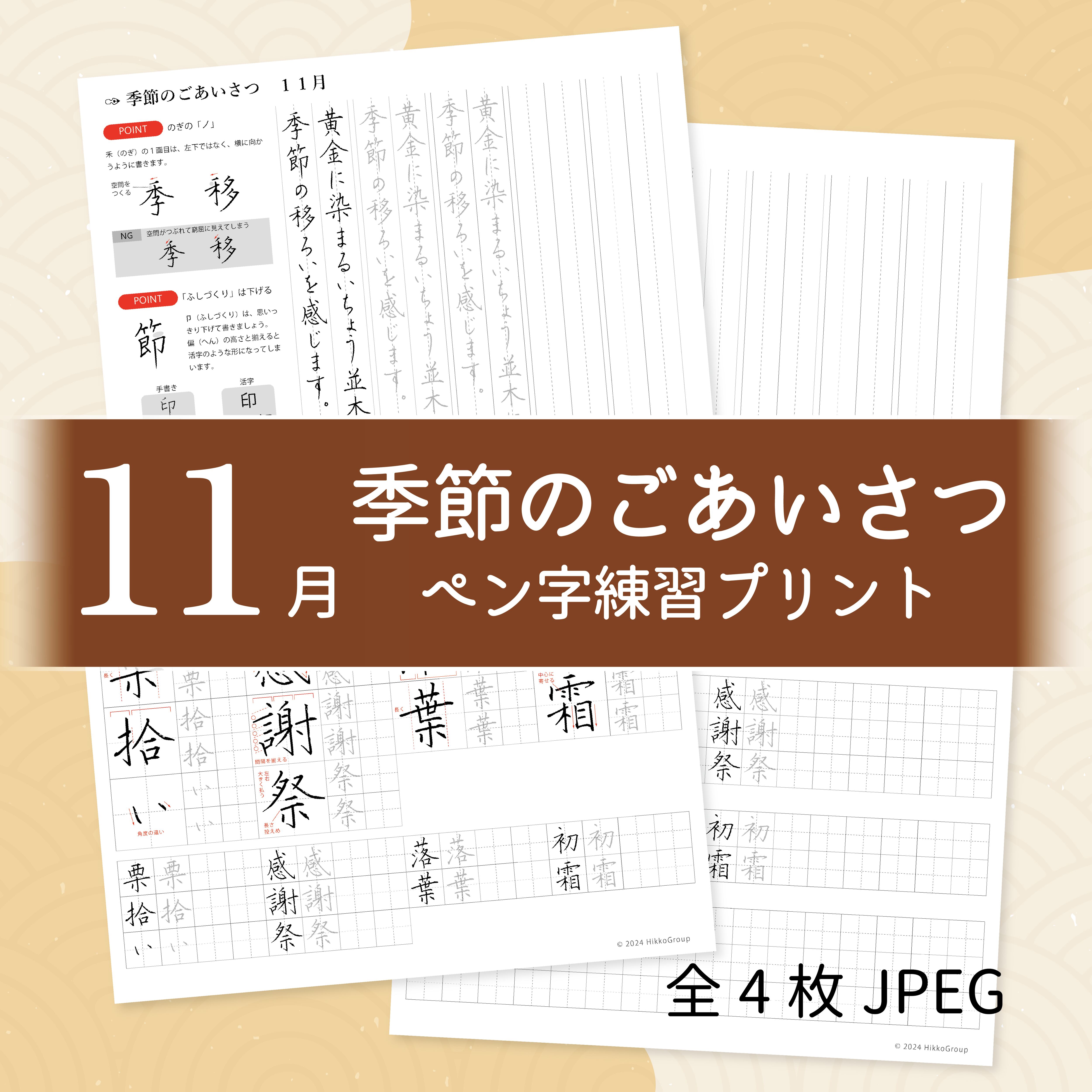 【11月/全4枚】季節のごあいさつで練習する ペン字プリント(JPEG)